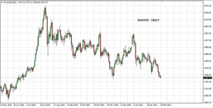 Spot gold (XAUUSD) continued its downtrend setting a new low price for 2023 and within touching distance of the lows set in November. With markets risk on as vaccines rollout and positive signs of an global economic recovery the lustre has been taken off the precious metal for now.